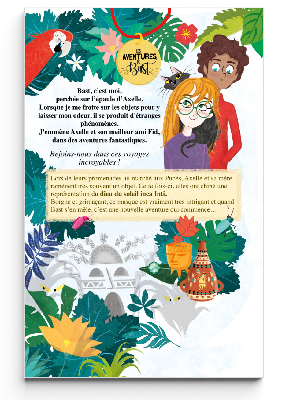 Axelle et sa mère ont chiné au marché aux Puces un étrange masque représentant Inti, le dieu du soleil inca. Et lorsque Bast s’en mêle, c’est l’aventure qui commence !
